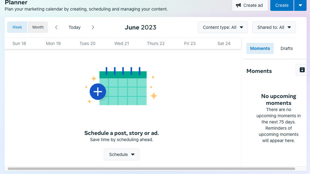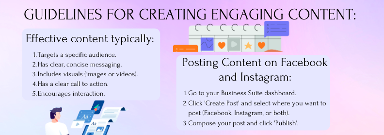 Learning the Types of Content You Can Create: The Meta Business Suite allows for creating and scheduling regular posts, stories, and promotions on Facebook and Instagram.