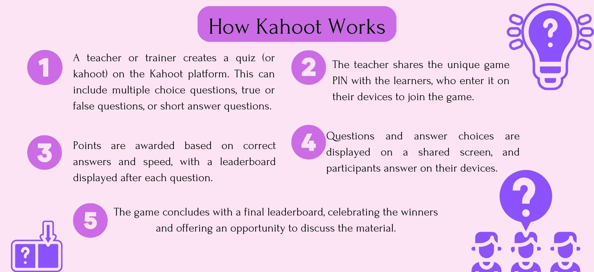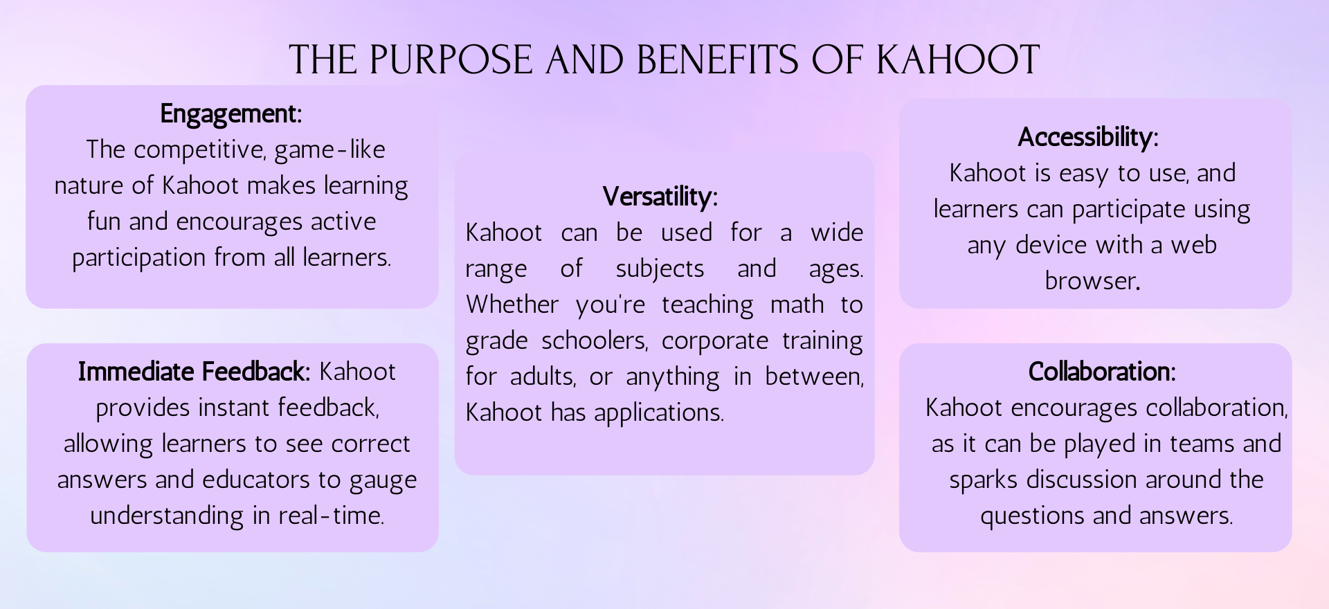 Kahoot is a powerful tool for educators to create engaging, interactive learning experiences that can enhance understanding and retention of material. It's versatile, user-friendly, and a fantastic addition to any learning environment.