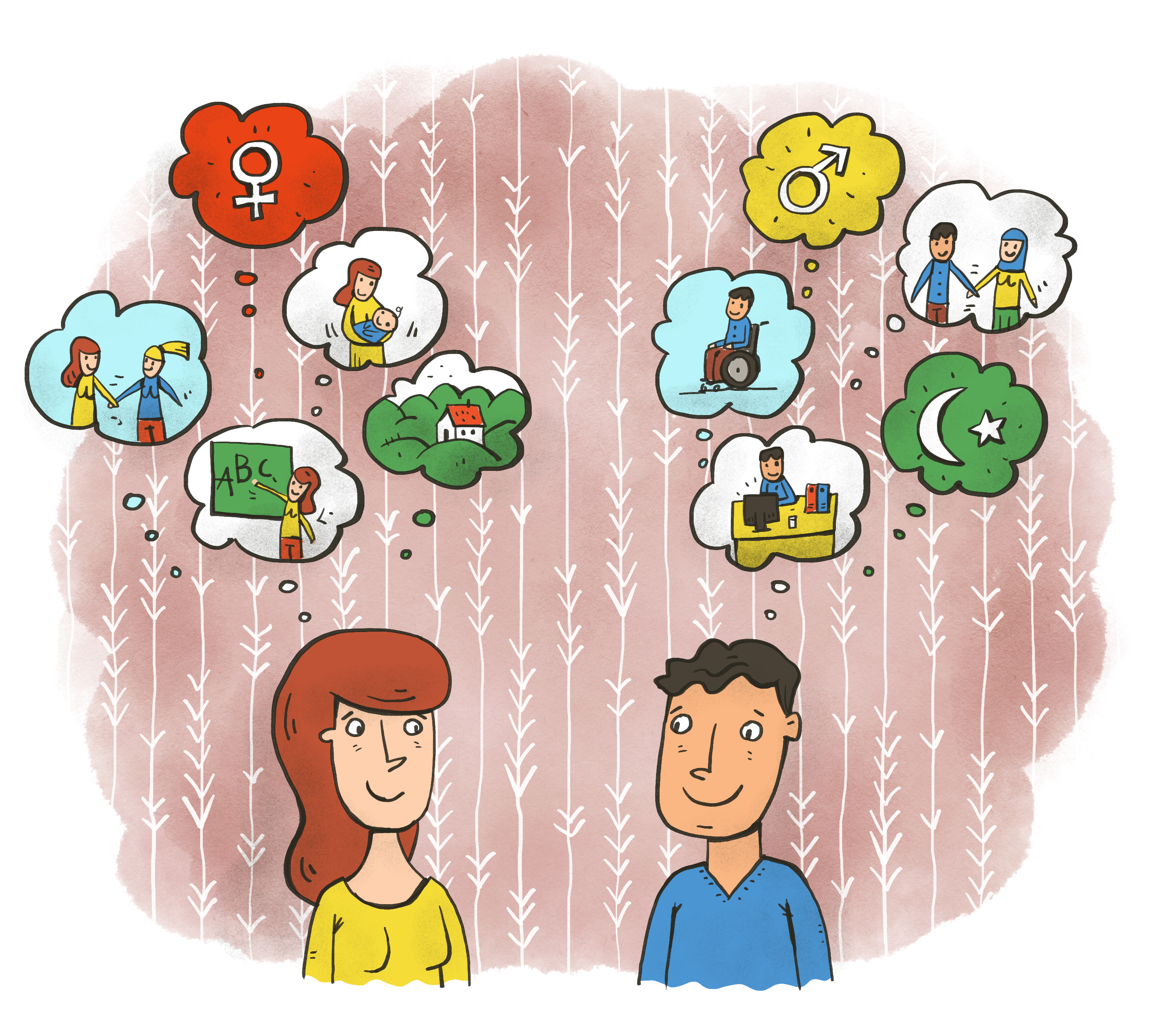 People belong to different social and socially constructed categories at the same time, such as ‘race’, gender, socio-economic status, sexual orientation, disability and others, which together affect our experiences of discrimination and privilege.